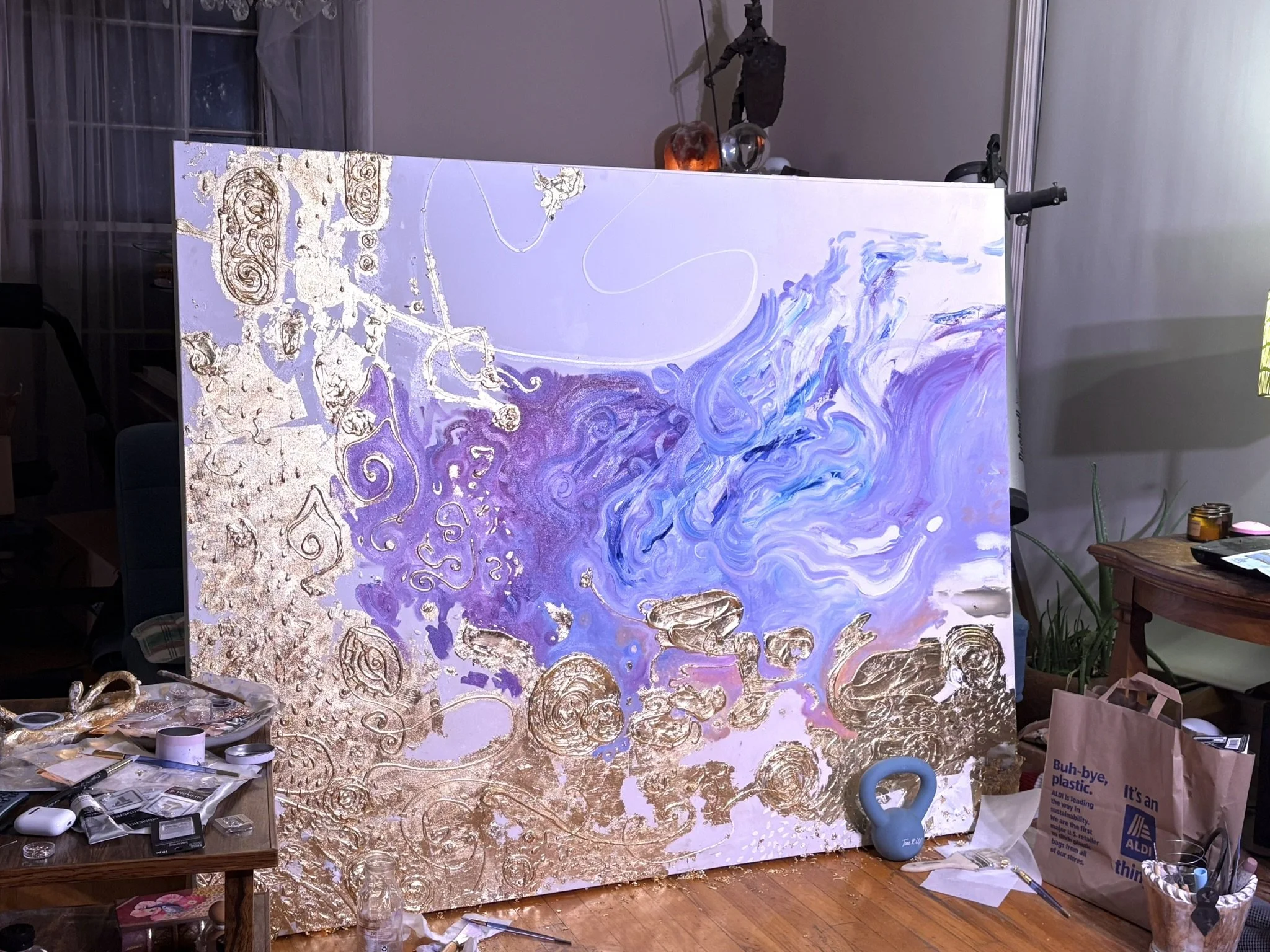 is an artist inspired by esoterica, the power of healing, & the journey of the soul. Pushing boundaries in fine art mediums through abstract, expressionist, & surrealist styles, her mediums are primarily watercolor, oil paint, & clay sculpture using mixed media forms to create dynamic textures, glittering glass crystal scapes, nouveauic metallic emblems, & hypnotic movements through visual fantasy & symbolic visual languages.