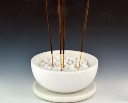 Lay the circle of straw inside of the salt bowl, and keep available for friends; family; guests; & yourself to light red sticks of incense, making wishes for the Lunar New Year.